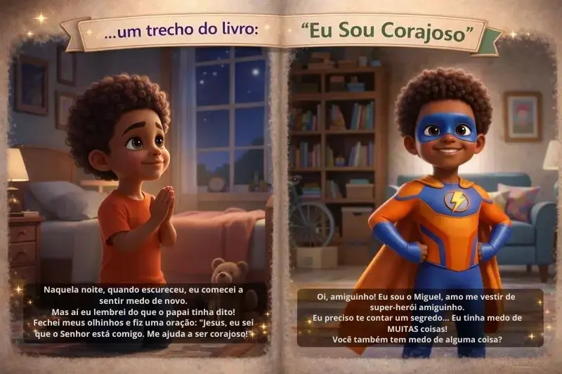 Crianças que sentem medo, enfrentam desafios e aprendem, com Jesus, a agir melhor em cada situação do dia a dia.